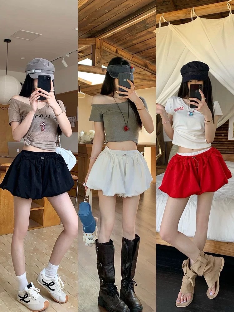 B860 纯欲风V领蝴蝶结露背宽松吊带上衣+短裤套装
