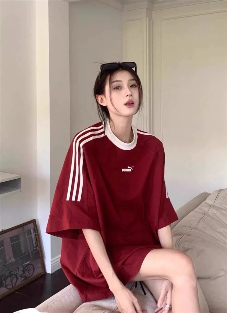 B092 Unisex PUMA撞色条纹宽松太空棉上衣