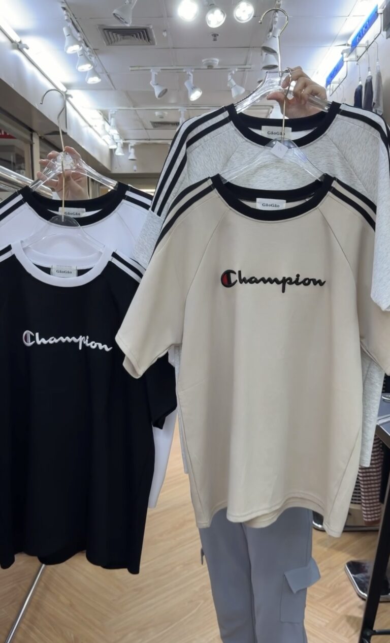 B089 Unisex Champion撞色条纹宽松太空棉上衣