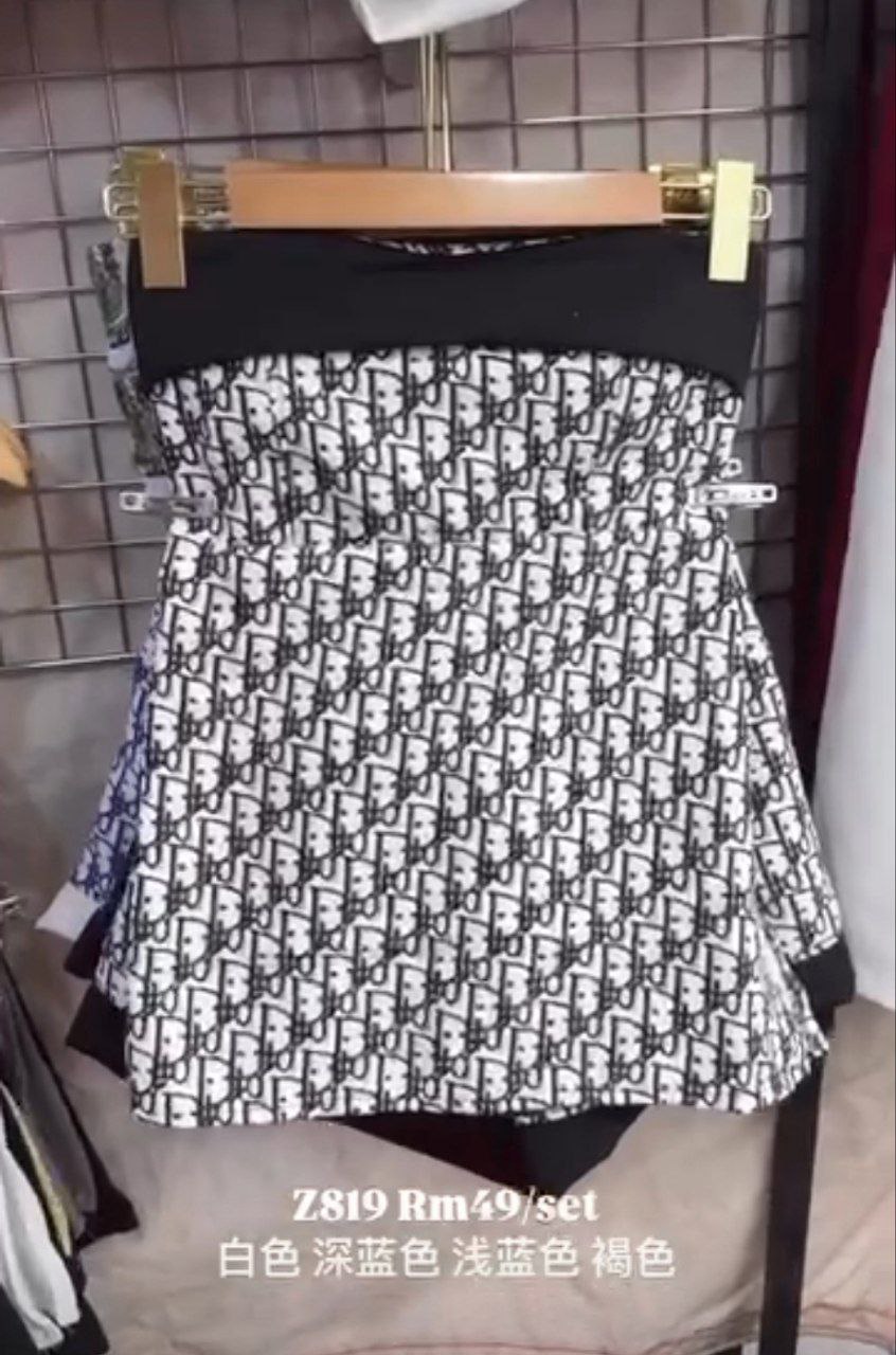 Z819S Dior老花满字印花一字肩套装