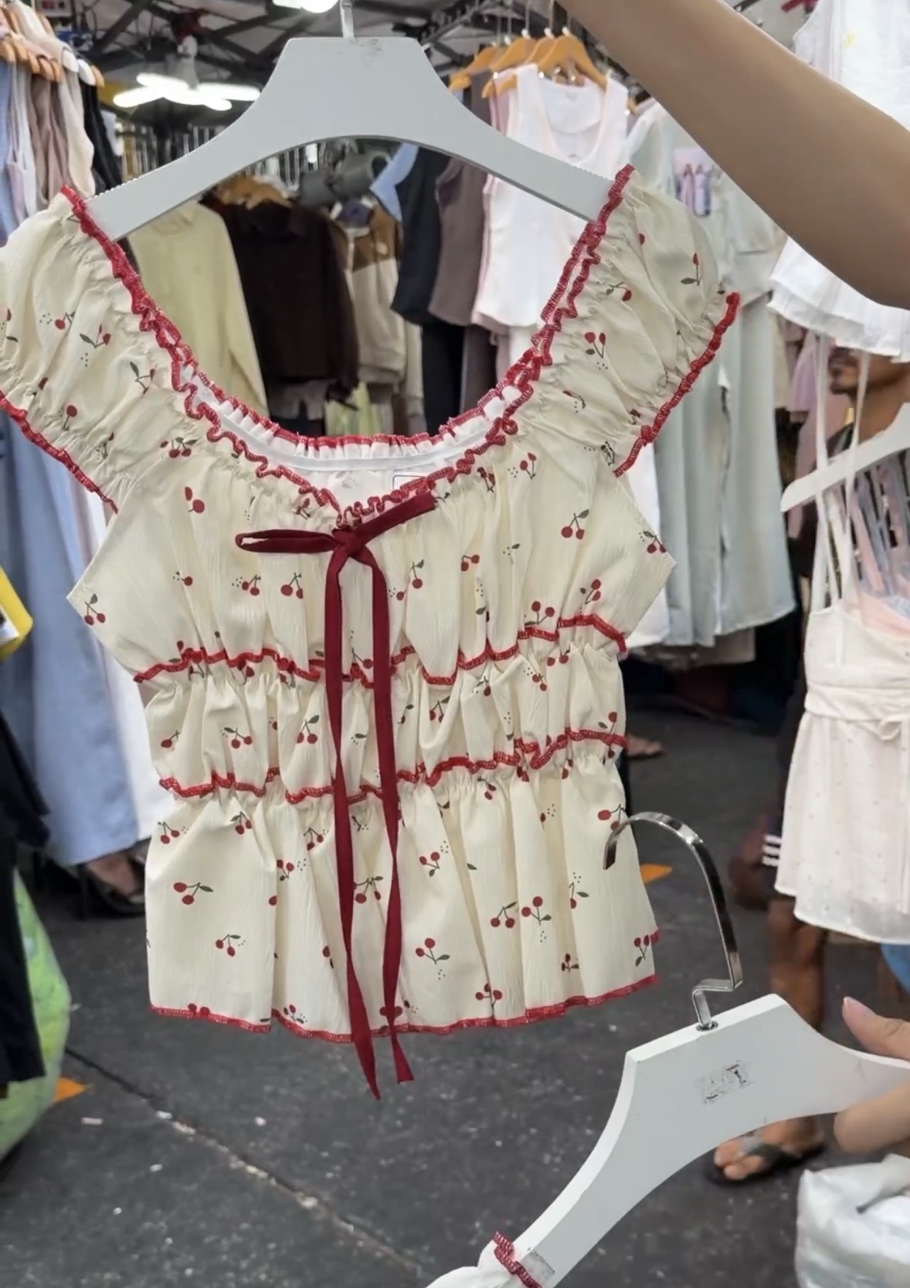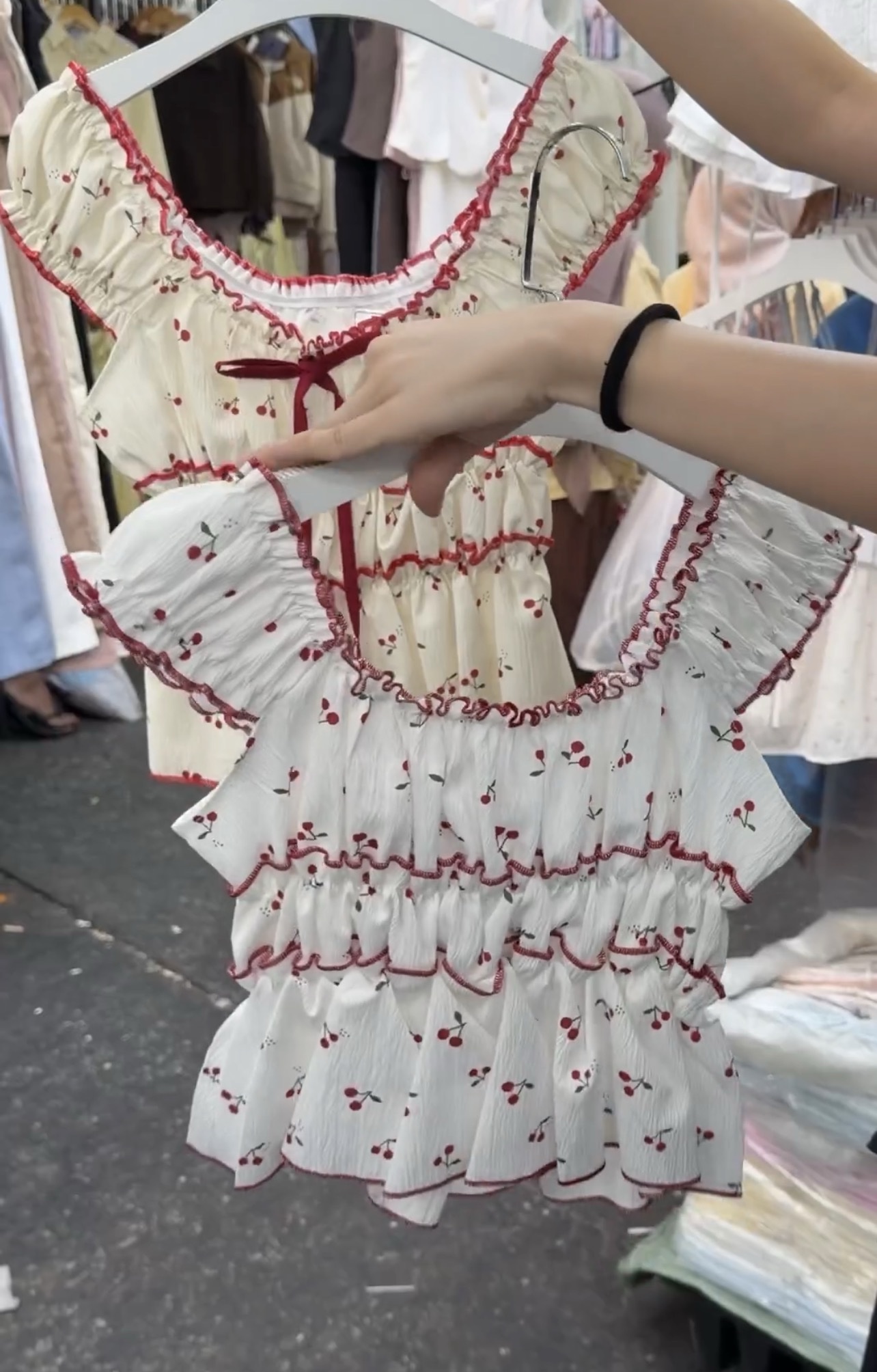 B853 甜美纯欲风樱桃收腰吊带上衣