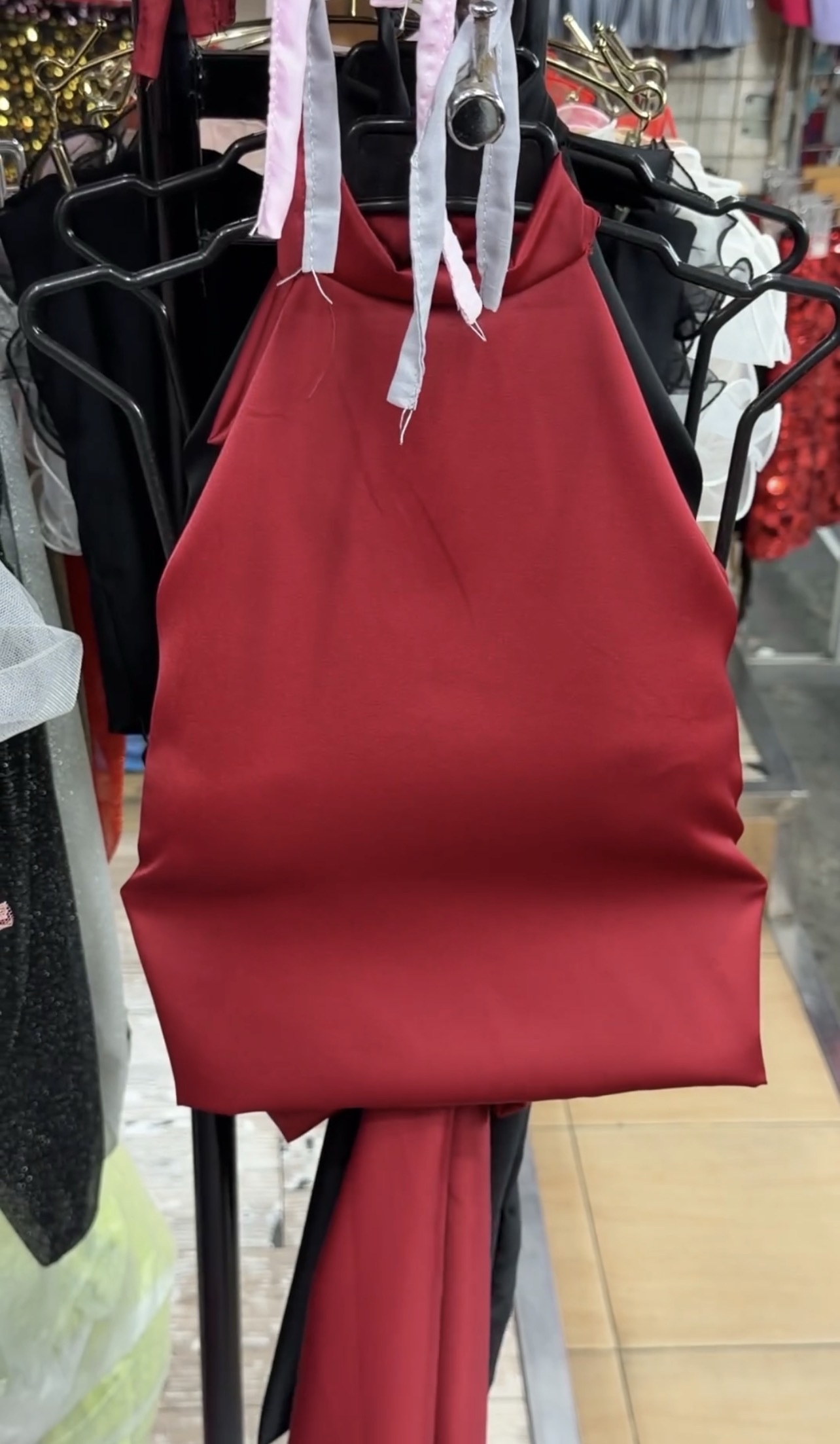 B917 高级感缎面大露背挂脖绑带上衣