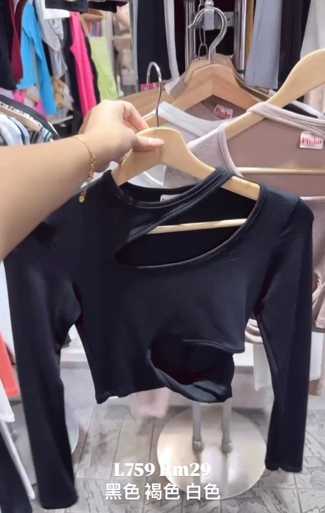 L759 纯欲镂空挖肩露腰短款长袖上衣