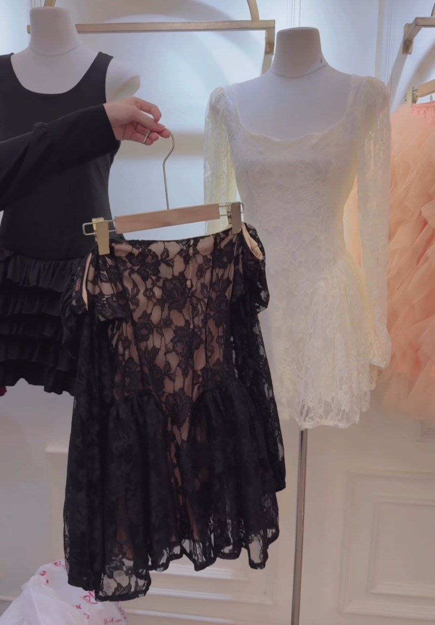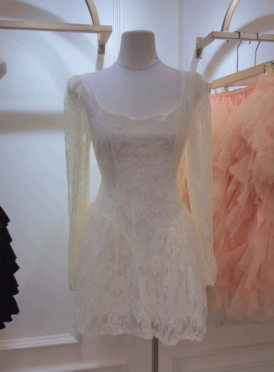 Y731 复古高级感收腰蕾丝长袖连衣裙