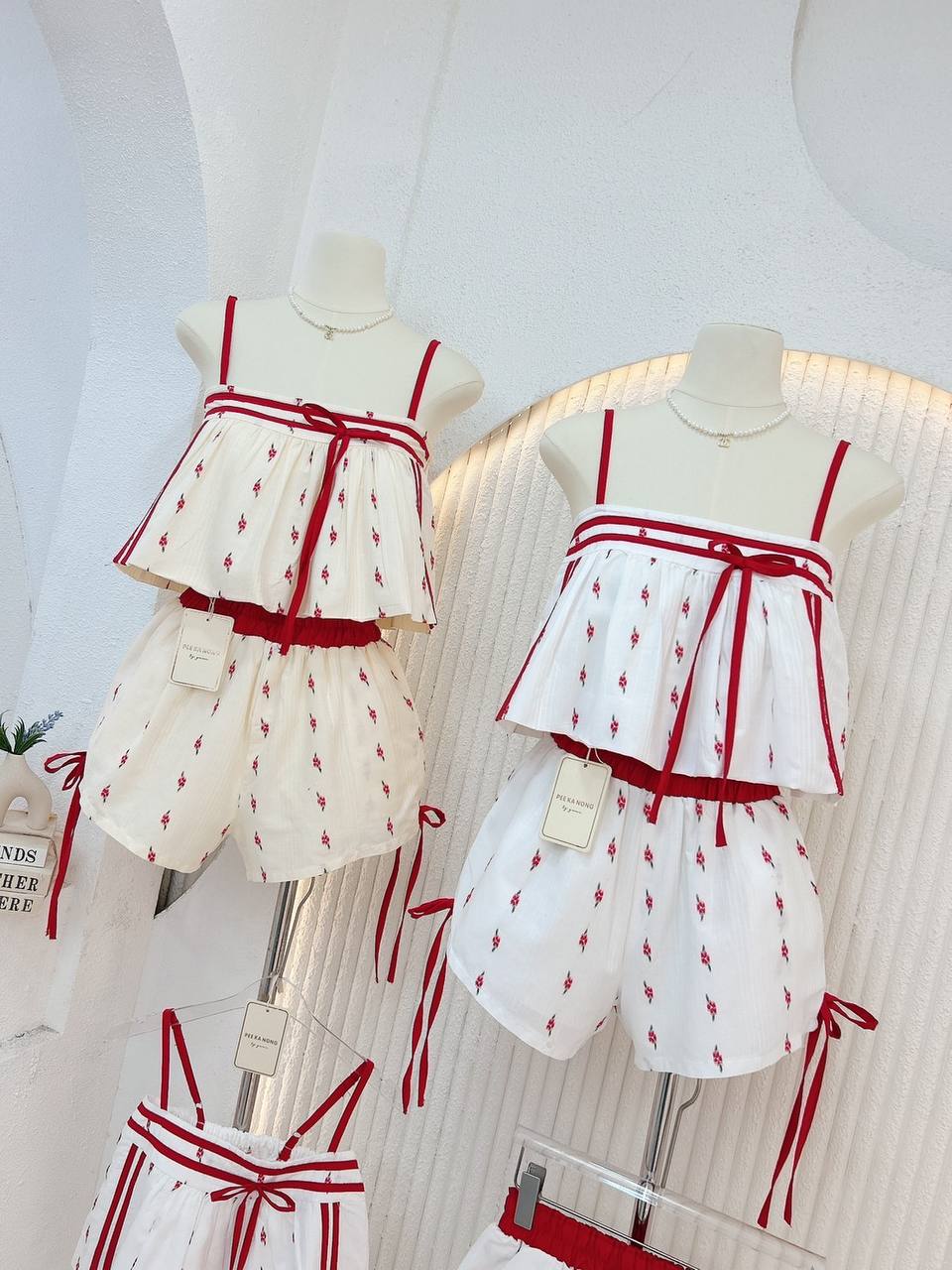 Z474 PKN家甜美设计感印花背心上衣短裤两件套