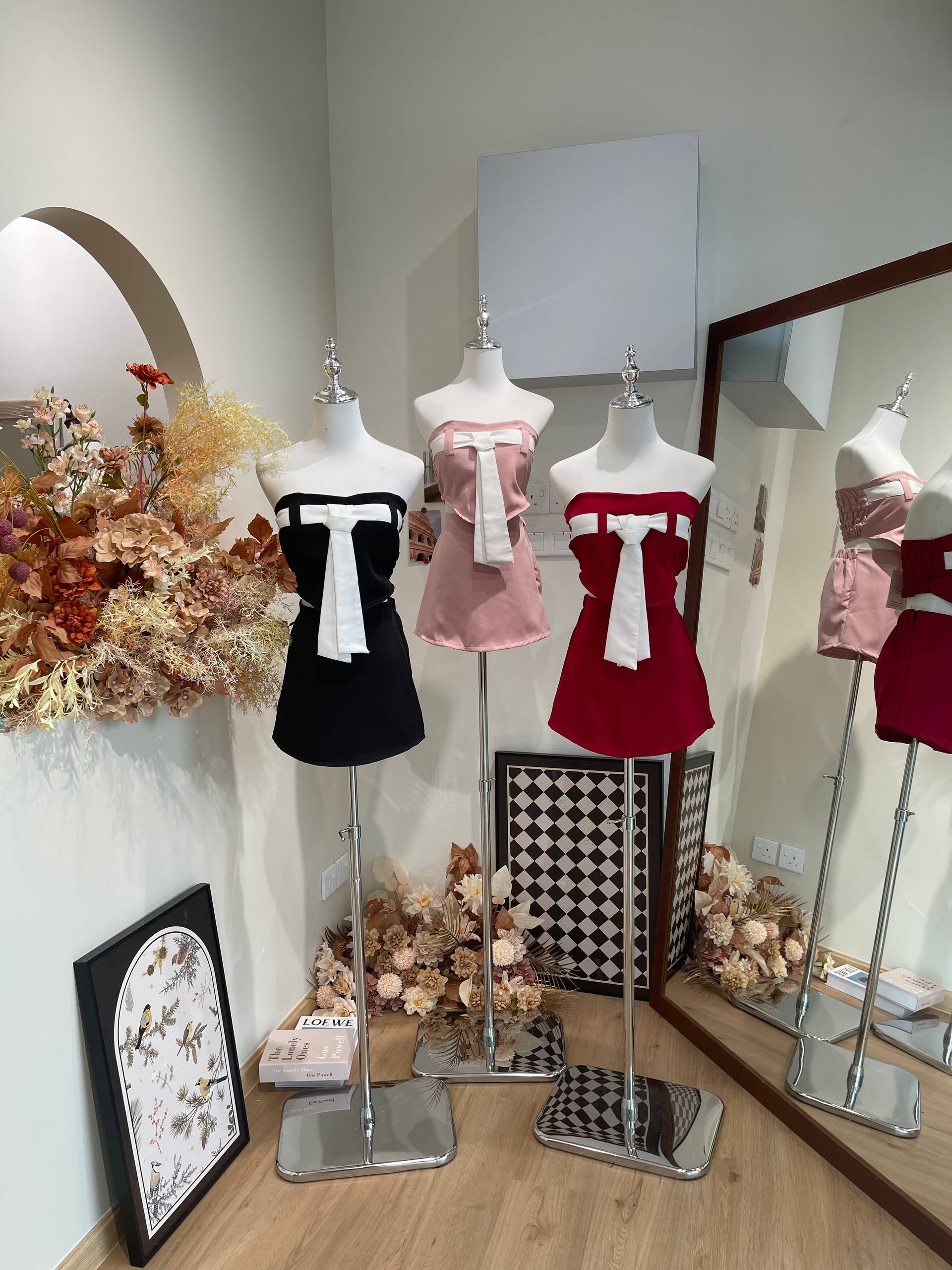 Z537 立体撞色蝴蝶结抹胸裤裙套装