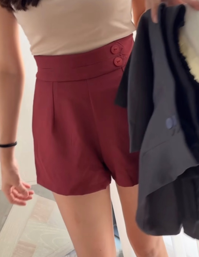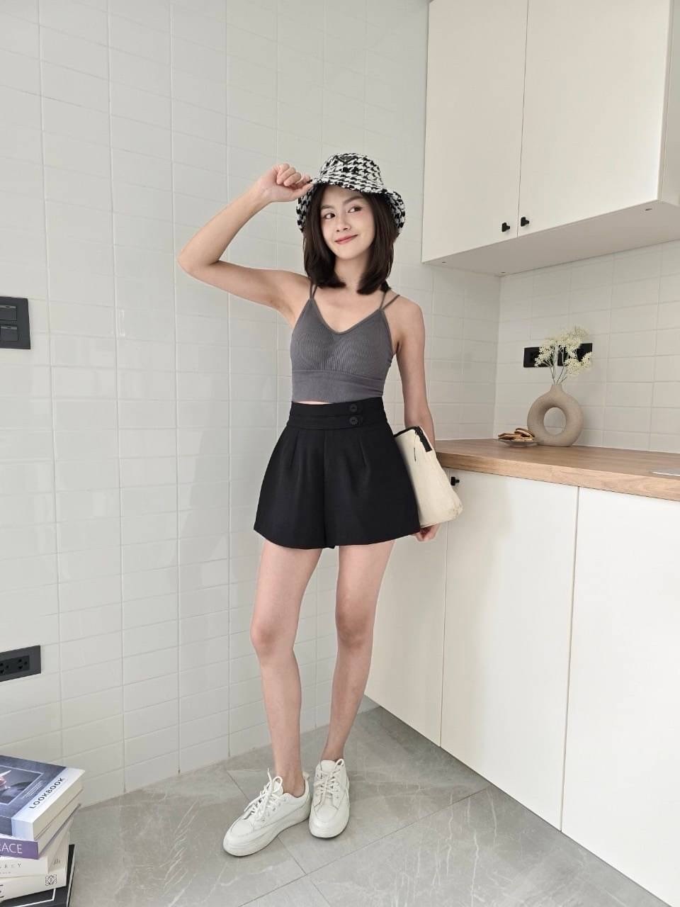 Z703 纽扣设计高腰短裤