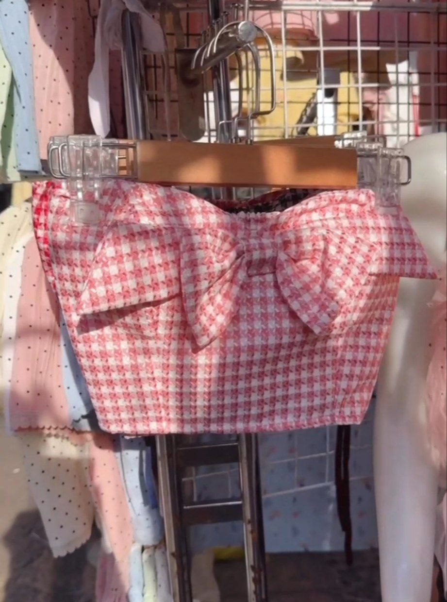 Z741 小香风蝴蝶结带胸垫抹胸短上衣