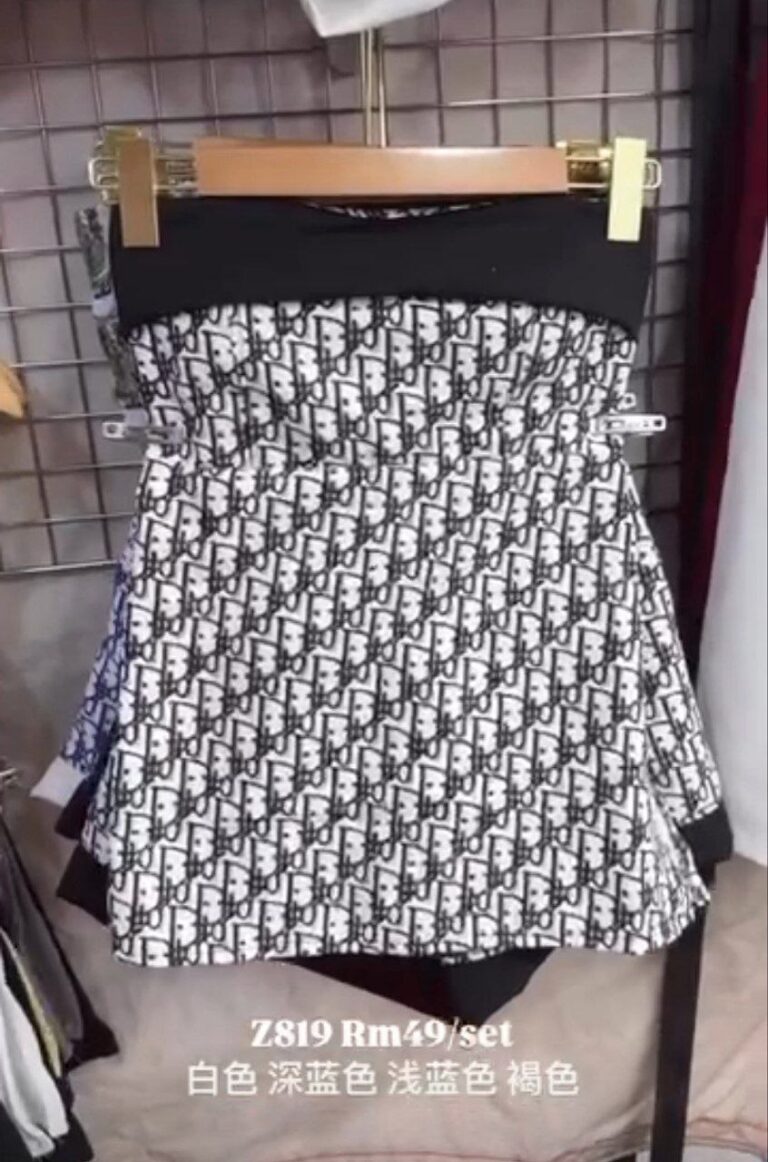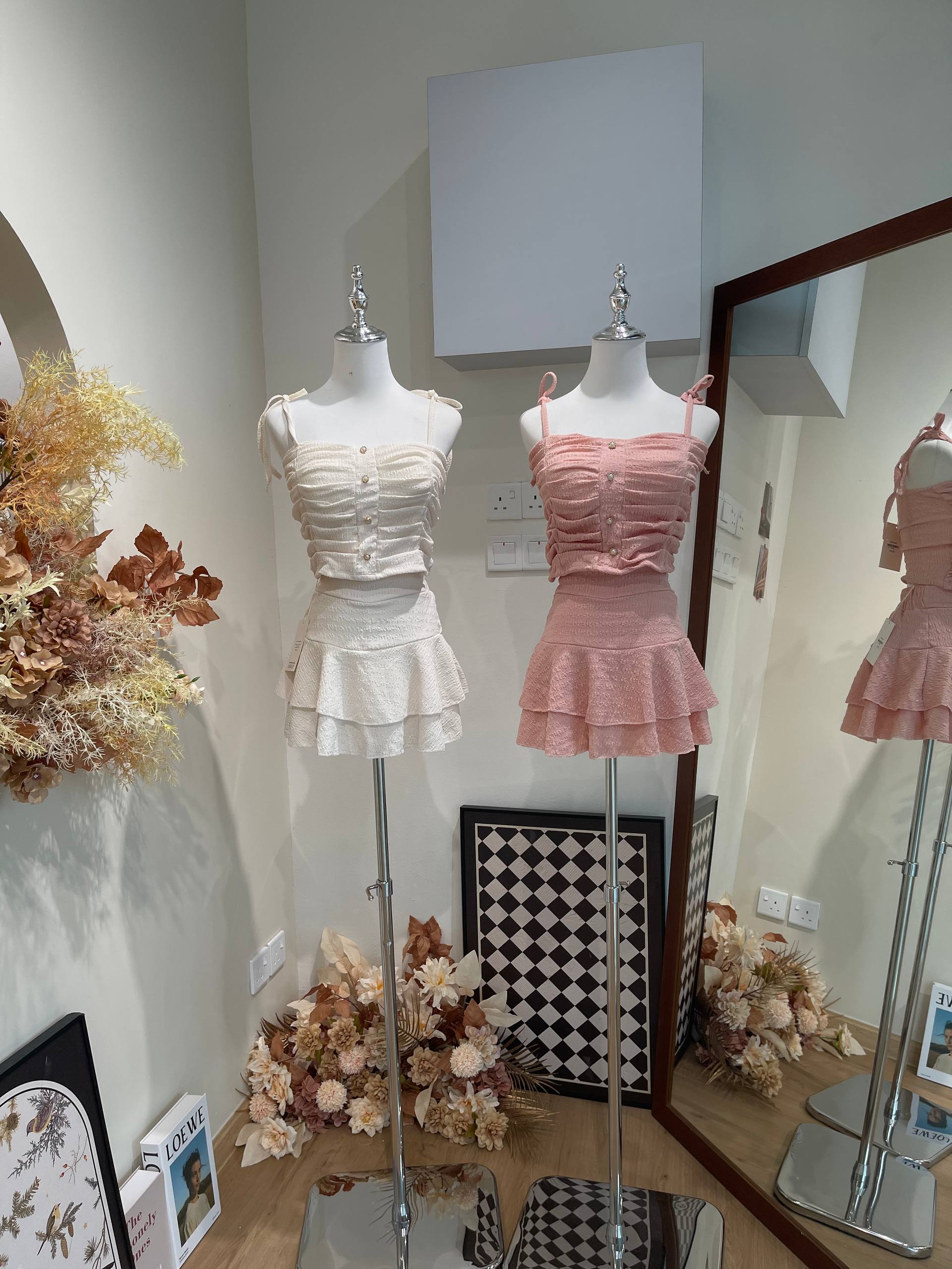 Z356 立体花朵挂脖抹胸+褶皱不规则半身裙