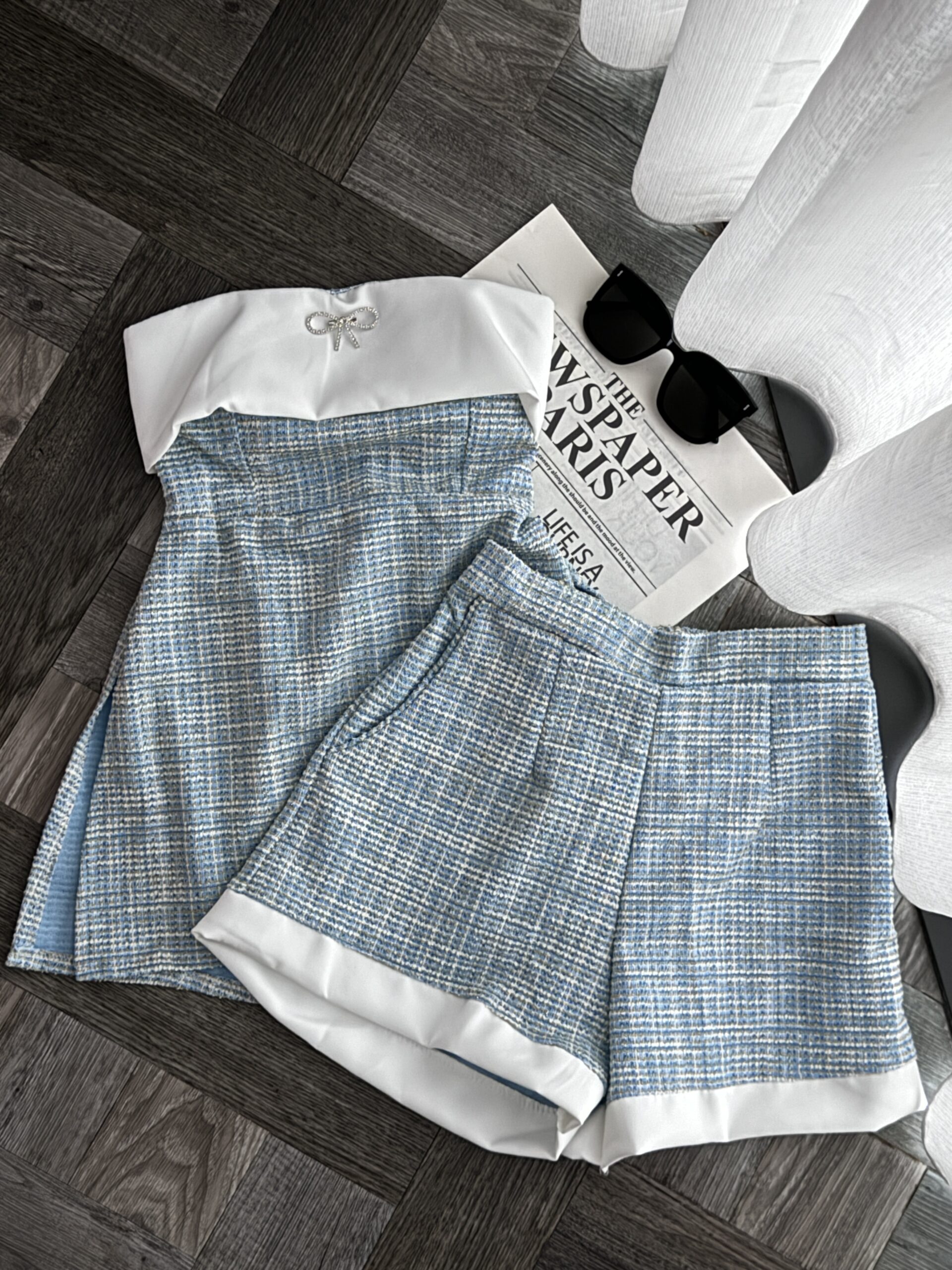 Z356 立体花朵挂脖抹胸+褶皱不规则半身裙